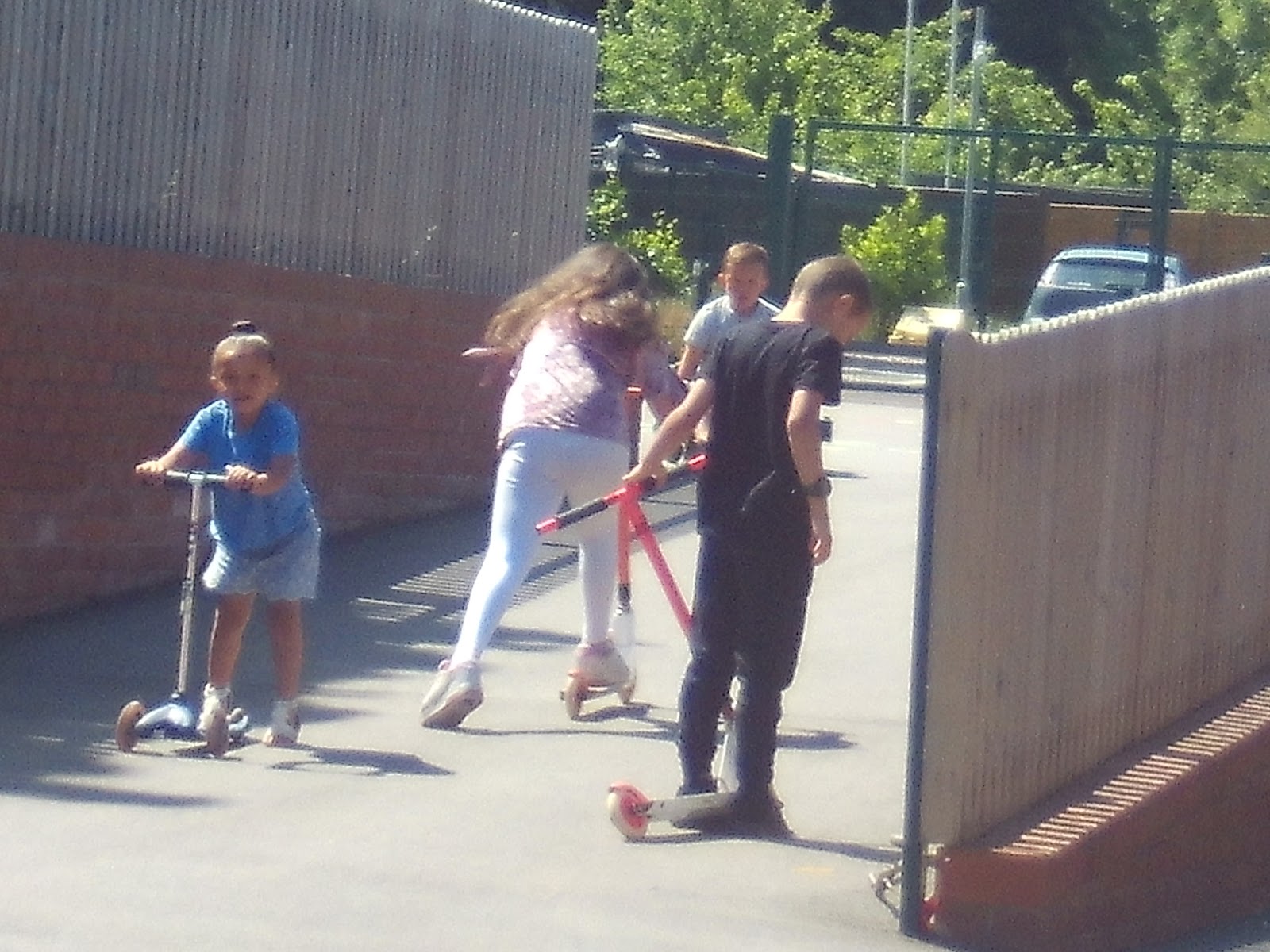 had a break and went outside for a while. We played on the scooters and some of